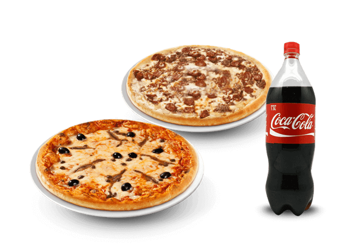 2 Pizzas Senior au choix + 1 Maxi Coca cola 1.5l.